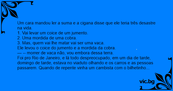 Um cara mandou ler a suma e a cigana disse que ele teria três desastre na vida.