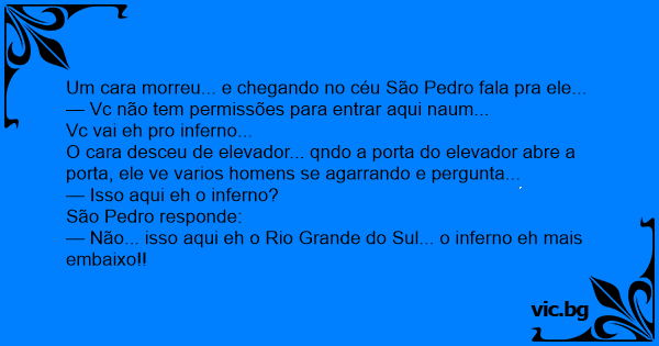 — Não... isso aqui eh o Rio Grande do Sul... o inferno eh mais embaixo!!