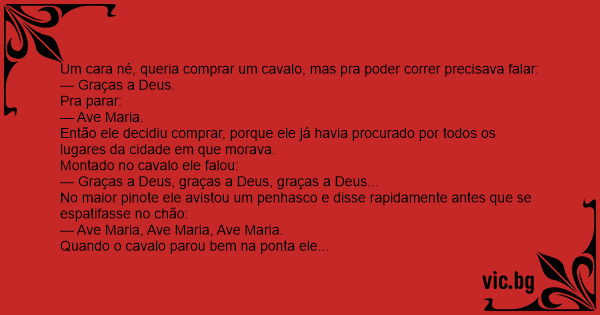 Um cara né, queria comprar um cavalo, mas pra poder correr precisava falar: