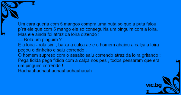 Um cara queria com 5 mangos compra uma рuта so que a рuта falou p´ra ele que com 5 mango ele so conseguiria um pinguim com a loira.