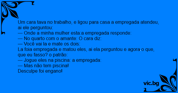 La foia empregada e matou eles, ai ela perguntou e agora o que, que eu fasso? o patrão: