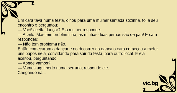 — Aceito. Mas tem probleminha, as minhas duas pernas são de раu! E cara respondeu: