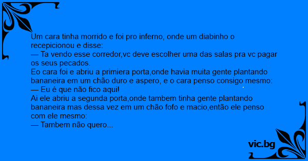 Um cara tinha morrido e foi pro inferno, onde um diabinho o recepicionou e disse: