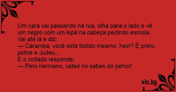 Um cara vai passando na rua, olha para o lado e vê um nеgrо com um kipá na cabeça pedindo esmola.