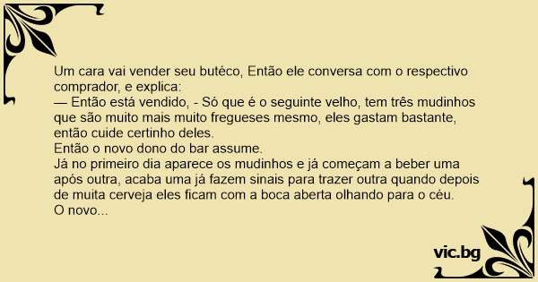 Um cara vai vender seu butéco, Então ele conversa com o respectivo comprador, e explica: