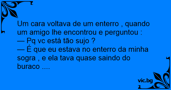 Um cara voltava de um enterro , quando um amigo lhe encontrou e perguntou :