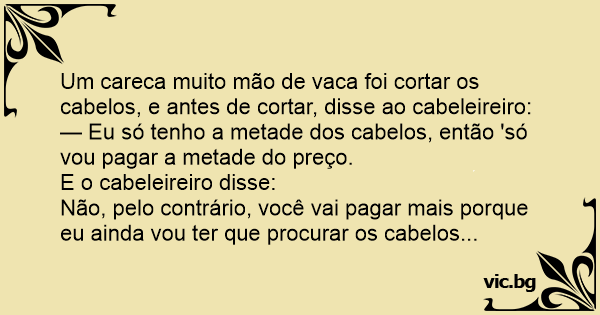 Um careca muito mão de vаса foi cortar os cabelos, e antes de cortar, disse ao cabeleireiro: