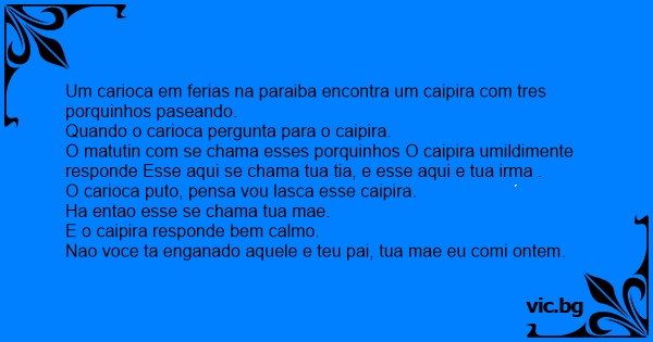 O matutin com se chama esses porquinhos O caipira umildimente responde Esse aqui se chama tua tia, e esse aqui e tua irma .