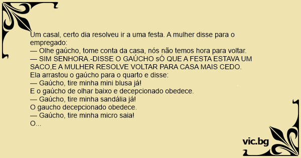 Um casal, certo dia resolveu ir a uma festa. A mulher disse para o empregado: