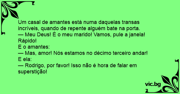 — Mas, amor! Nós estamos no décimo terceiro andar!