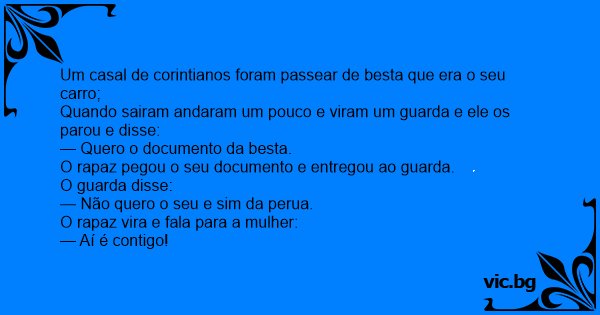 Um casal de corintianos foram passear de besta que era o seu carro;