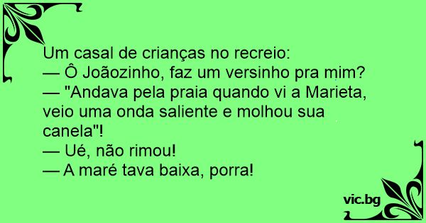 — "Andava pela praia quando vi a Marieta, veio uma onda saliente e molhou sua canela"!