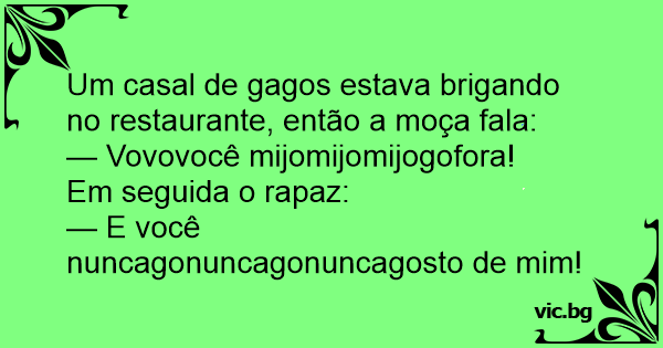 Um casal de gagos estava brigando no restaurante, então a moça fala: