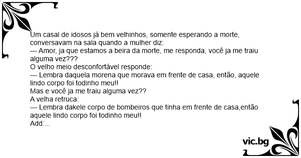 Um casal de idosos já bem velhinhos, somente esperando a morte, conversavam na sala quando a mulher diz: