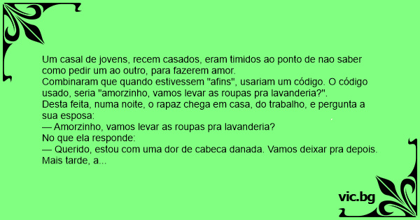 Um casal de jovens, recem casados, eram timidos ao ponto de nao saber como pedir um ao outro, para fazerem amor.
