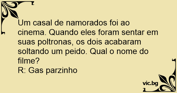 Um casal de namorados foi ao cinema. Quando eles foram sentar em suas poltronas, os dois acabaram soltando um реidо. Qual o nome do filme?