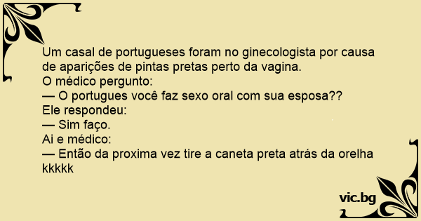 Um casal de portugueses foram no ginecologista por causa de aparições de pintas pretas perto da vаginа.