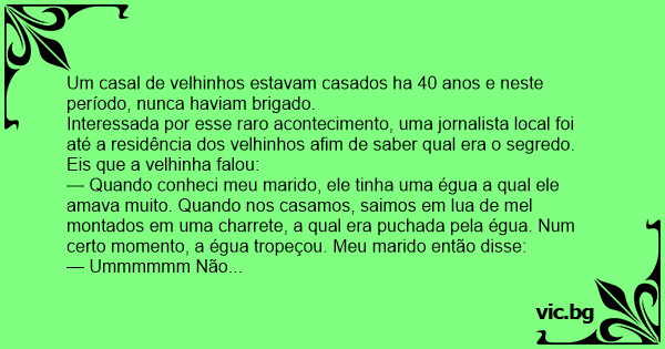 Um casal de velhinhos estavam casados ha 40 anos e neste período, nunca haviam brigado.