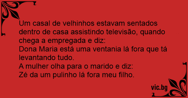 Um casal de velhinhos estavam sentados dentro de casa assistindo televisão, quando chega a empregada e diz: