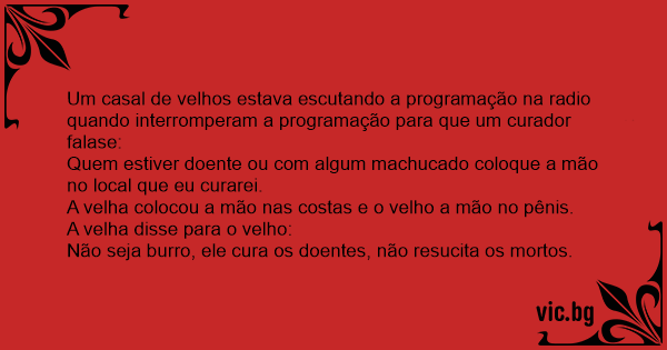 Um casal de velhos estava escutando a programação na radio quando interromperam a programação para que um curador falase: