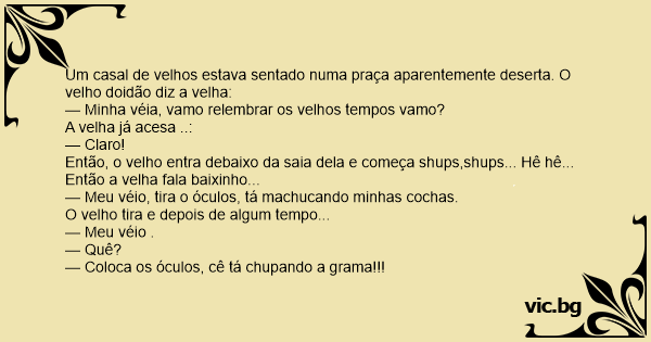 Um casal de velhos estava sentado numa praça aparentemente deserta. O velho doidão diz a velha: