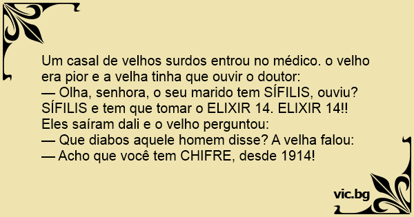 Um casal de velhos surdos entrou no médico. o velho era pior e a velha tinha que ouvir o doutor: