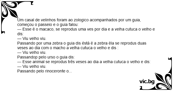 — Esse animal se reprodus três veses ao dia a velha cutuca o velho e dis: