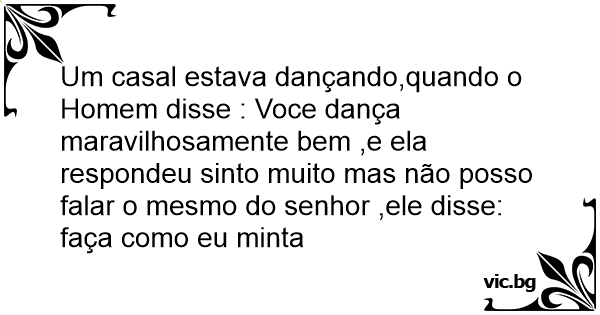Um casal estava dançando,quando o Homem disse : Voce dança maravilhosamente bem ,e ela respondeu sinto muito mas não posso falar o mesmo do senhor ,ele disse: faça como eu minta