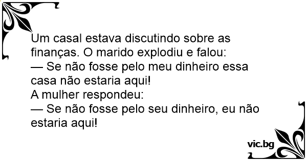Um casal estava discutindo sobre as finanças. O marido explodiu e falou: