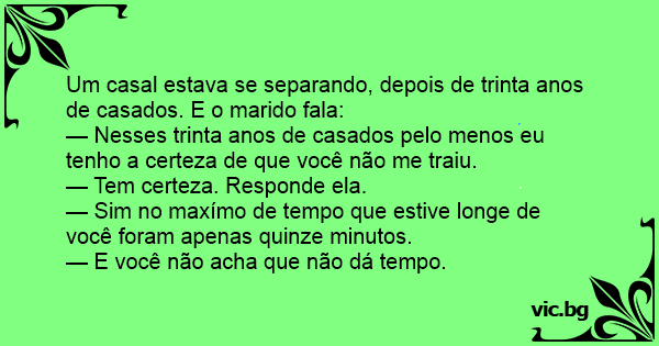 Um casal estava se separando, depois de trinta anos de casados. E o marido fala: