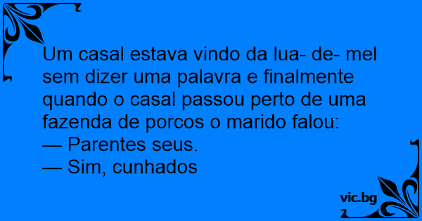 Um casal estava vindo da lua- de- mel sem dizer uma palavra e finalmente quando o casal passou perto de uma fazenda de porcos o marido falou: