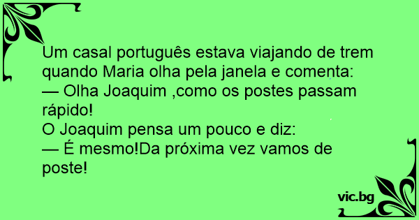 Um casal português estava viajando de trem quando Maria olha pela janela e comenta:
