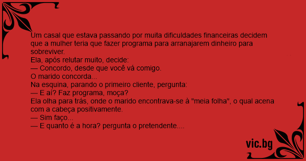 Ela olha novamente ao marido... o qual responde que era cem reais: