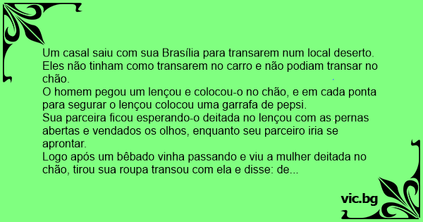 Logo após um bêbado vinha passando e viu a mulher deitada no chão, tirou sua roupa transou com ela e disse: de agora em diante só vou tomar pepsi, porque a coca cola não faz umas promoções dessas.