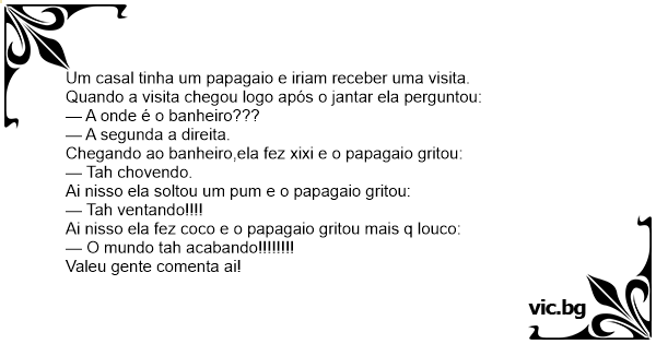Ai nisso ela fez coco e o papagaio gritou mais q louco: