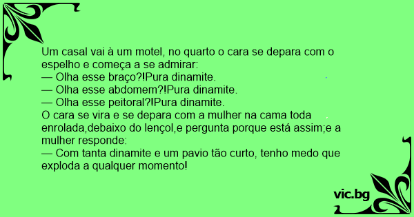 Um casal vai à um motel, no quarto o cara se depara com o espelho e começa a se admirar: