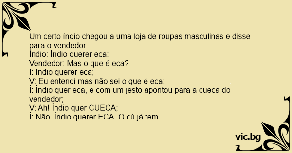 Um certo índio chegou a uma loja de roupas masculinas e disse para o vendedor: