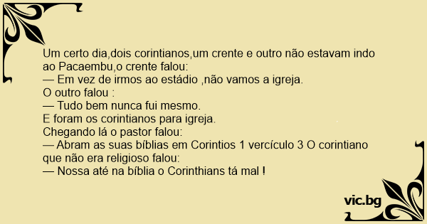— Nossa até na bíblia o Corinthians tá mal !