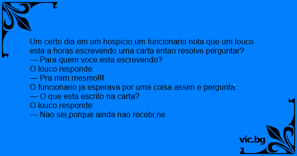 Um certo dia em um hospicio,um funcionario nota que um louco esta a horas escrevendo uma carta entao resolve perguntar?
