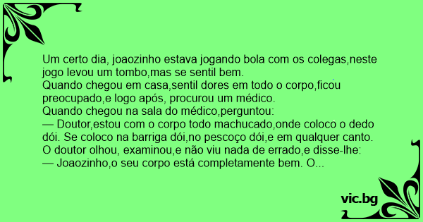 — Joaozinho,o seu corpo está completamente bem. O problema é que o seu dedo está quebrado.