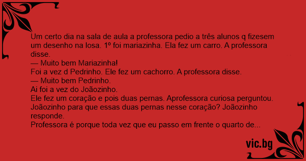 Ele fez um coração e pois duas pernas. Aprofessora curiosa perguntou.