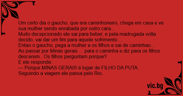 — Porque MINAS GERAIS é lugar de FILHO DA РUТА.