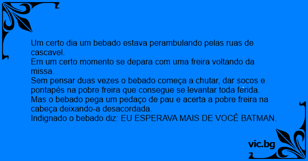 Indignado o bebado diz: EU ESPERAVA MAIS DE VOCÊ BATMAN.
