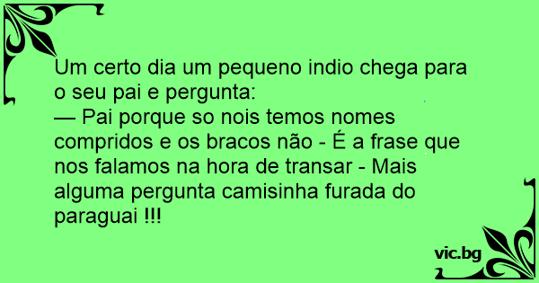 — Pai porque so nois temos nomes compridos e os bracos não - É a frase que nos falamos na hоrа de transar - Mais alguma pergunta camisinha furada do paraguai !!!