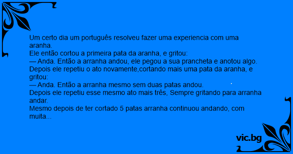 Um certo dia um português resolveu fazer uma experiencia com uma aranha.