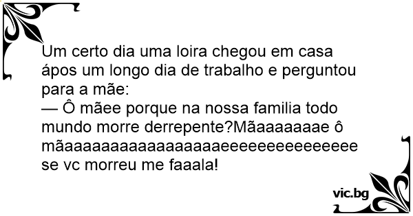 Um certo dia uma loira chegou em casa ápos um longo dia de trabalho e perguntou para a mãe: