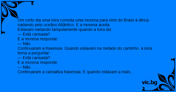 Um certo dia uma loira convida uma morena para irem do Brasil á áfrica nadando pelo oceâno Atlântico. E a morena aceita.