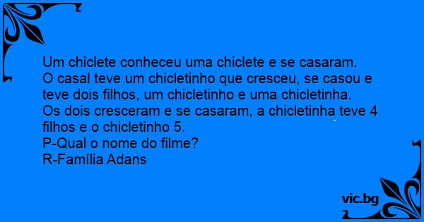 Os dois cresceram e se casaram, a chicletinha teve 4 filhos e o chicletinho 5.