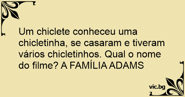 Um chiclete conheceu uma chicletinha, se casaram e tiveram vários chicletinhos. Qual o nome do filme? A FAMÍLIA ADAMS