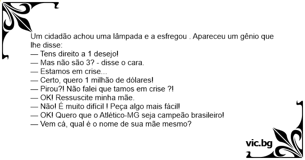 Um cidadão achou uma lâmpada e a esfregou . Apareceu um gênio que lhe disse: